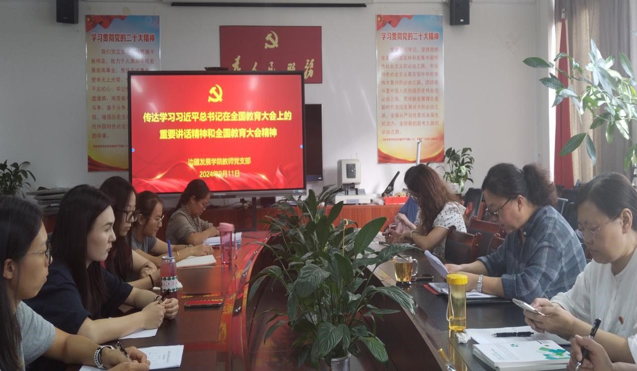 9月11日,边疆发展学院教师党支部召开党员大会,传达学习习近平总书记在全国教育大会上的重要讲话精神,围绕学校党委扩大会议精神及会议相关要求作工作安排部署。