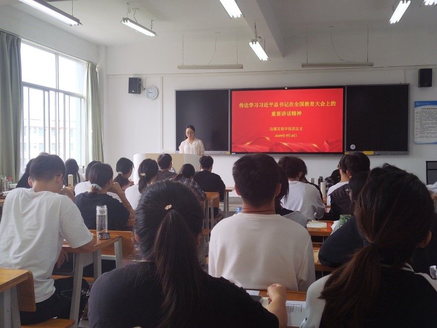 9月12日,边疆发展学院团总支召开会议,传达学习习近平总书记在全国教育大会上的重要讲话精神。团支部书记、团总支学生干部和学生代表参加会议。