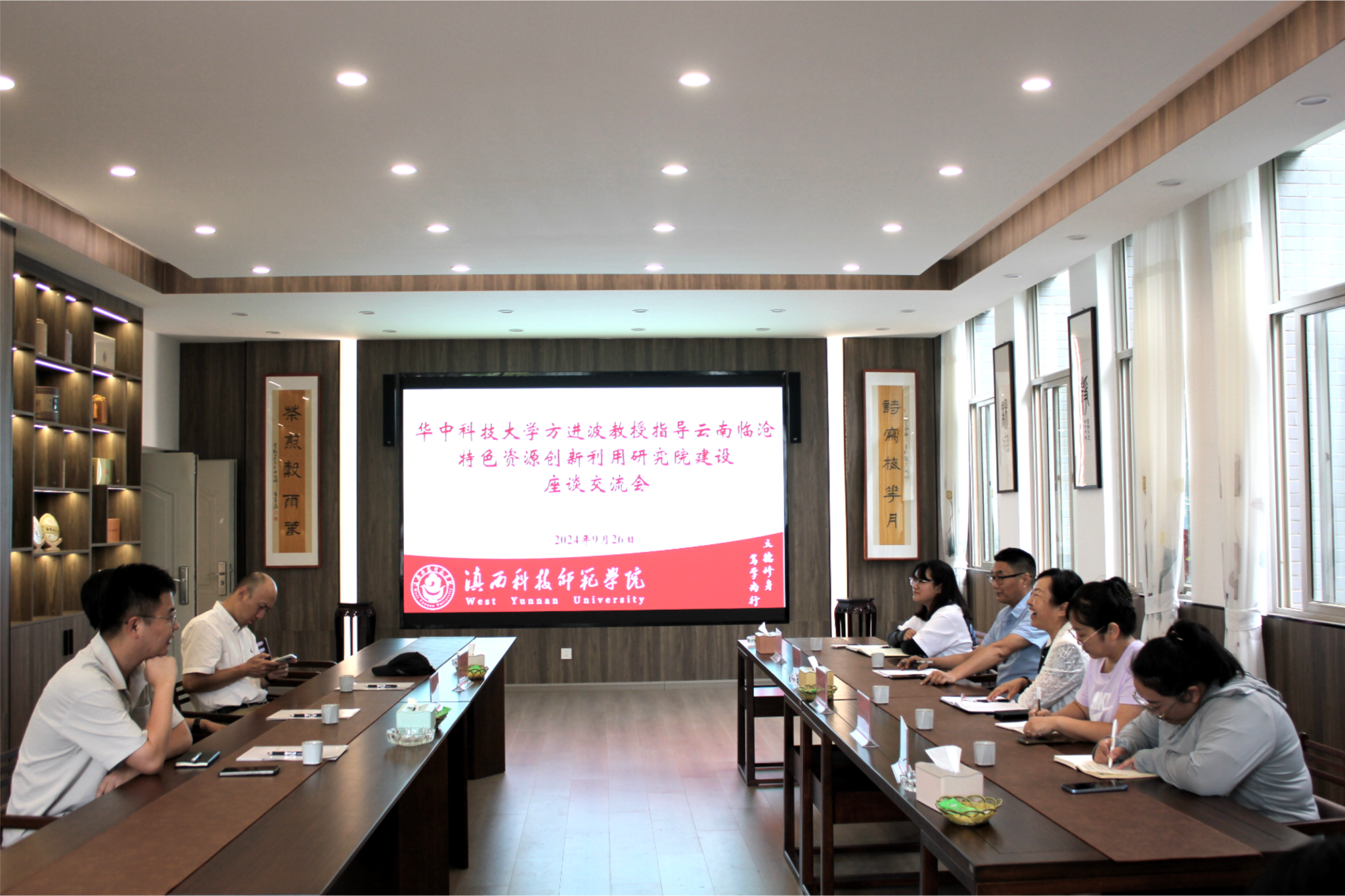 近日,生物技术与工程学院邀请华中科技大学方进波教授一行到校对云南临沧特色资源创新利用研究院建设进行指导,来自华中科技大学、在临翔区挂职干部贾法雷陪同。生物技术与工程学院院长于龙凤主持会议,学院教师代表参加座谈会。