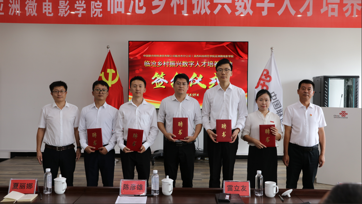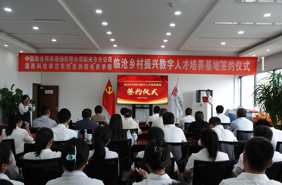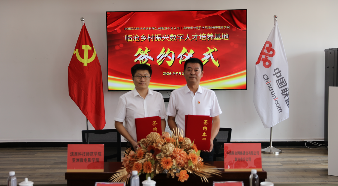 9月29日,我校亚洲微电影学院与中国联合网络通信有限公司临沧市分公司举行校企合作协议签订仪式,共同揭牌成立“临沧乡村振兴数字人才培养基地”,以积极响应国家乡村振兴战略,深化校企合作,促进产教融合。中国联通临沧市分公司总经理雷立友,亚洲微电影学院副院长陈彦雄出席仪式并讲话。