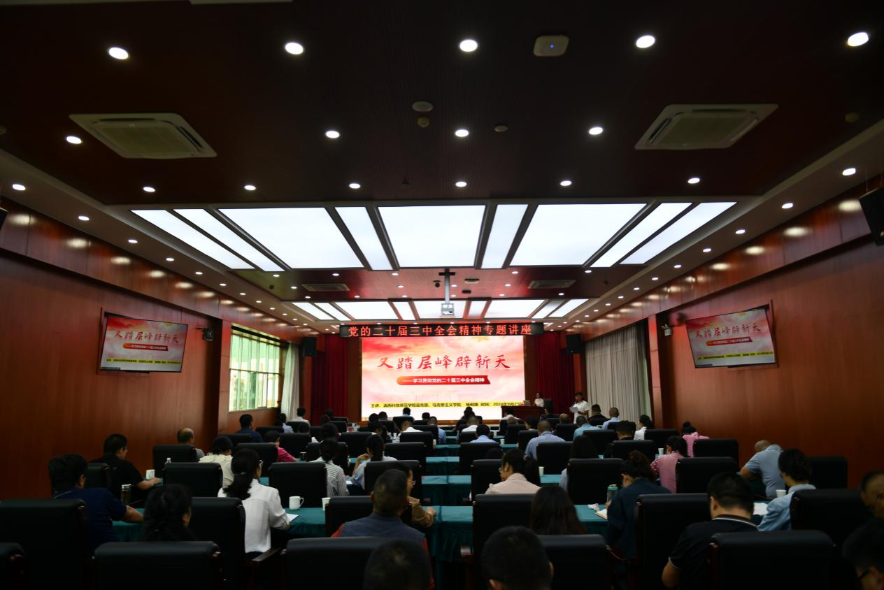 杨明艳教授以“党的二十届三中全会精神解读”为题,结合临沧市烟草专卖局实际,以实际案例讲述边疆民族团结的守护者——“时代楷模”鲍卫忠的先进事迹。在推进中国式现代化的伟大征程中,法治扮演着至关重要的角色,它是维护社会稳定、促进公平正义的坚固防线,更是中国式现代化的坚实保障。党的二十大报告指出:“公正司法是维护社会公平正义的最后一道防线。”党的二十届三中全会通过的《中共中央关于进一步全面深化改革、推进中国式现代化的决定》对“健全公正执法司法体制机制”作出专门部署、提出明确要求。
