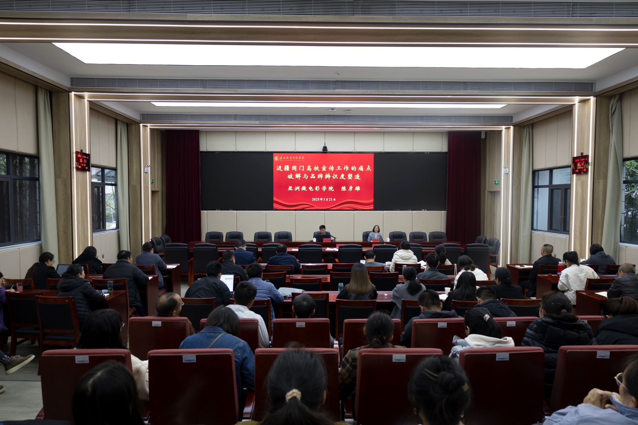 3月21日,宣传部针对新闻宣传工作“三审三校”制度与高校宣传工作痛点开展2025年春季学期宣传工作能力提升专题培训。此次培训由亚洲微电影学院副院长(主持工作)陈彦雄主讲,校党委委员、宣传部部长、马克思主义学院党总支副书记、院长杨明艳主持。