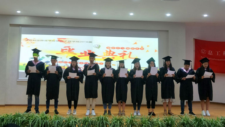 6月7日,信息工程学院在学校致真楼报告厅举行“挚梦齐飞,畅想未来”2018届毕业生毕业典礼,近200名师生参加典礼。