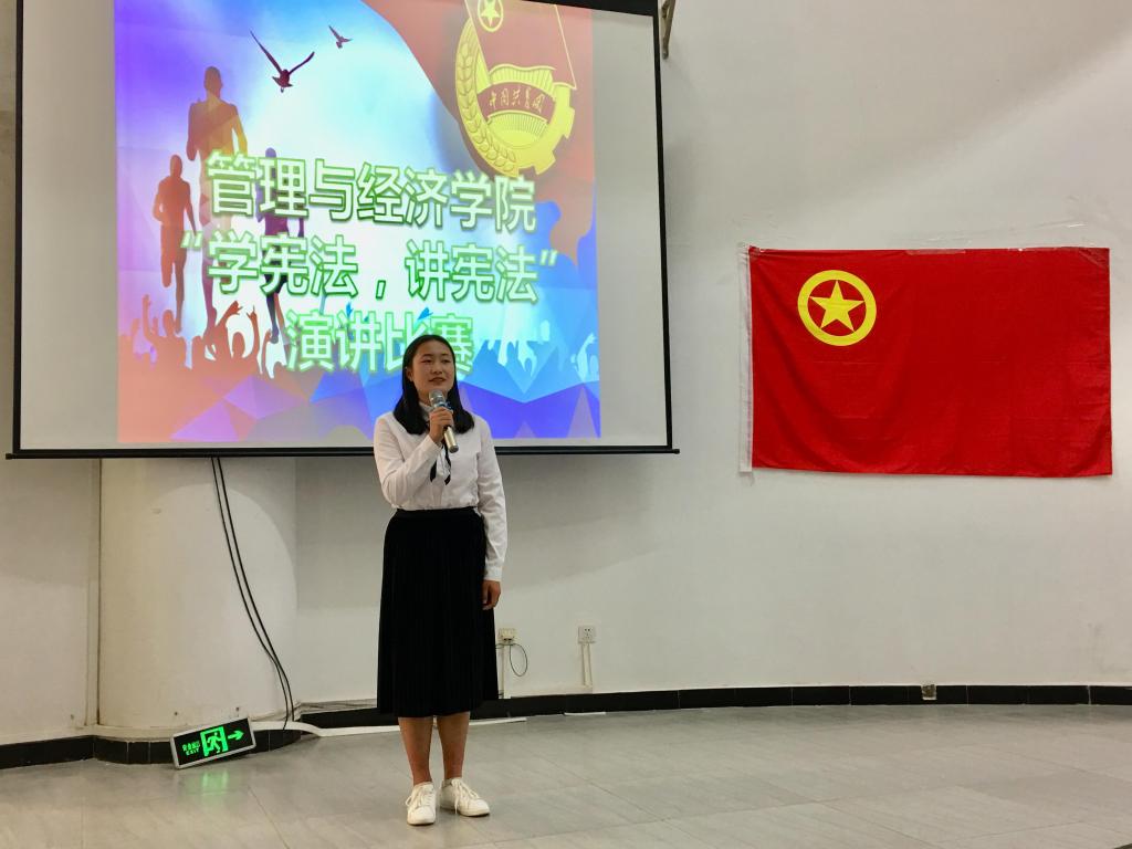 为深入学习宣传贯彻习近平新时代中国特色社会主义思想和党的十九大精神,全面贯彻落实中央全面依法治国委员会第一次会议精神,进一步深入开展宪法宣传教育,强化宪法宣传教育效果,提升师生宪法意识,10月24日,管理与经济学院团总支在众创空间二楼礼堂举行“学宪法 讲宪法”演讲比赛。经过报名推荐,共有8位优秀选手参与本次比赛。
