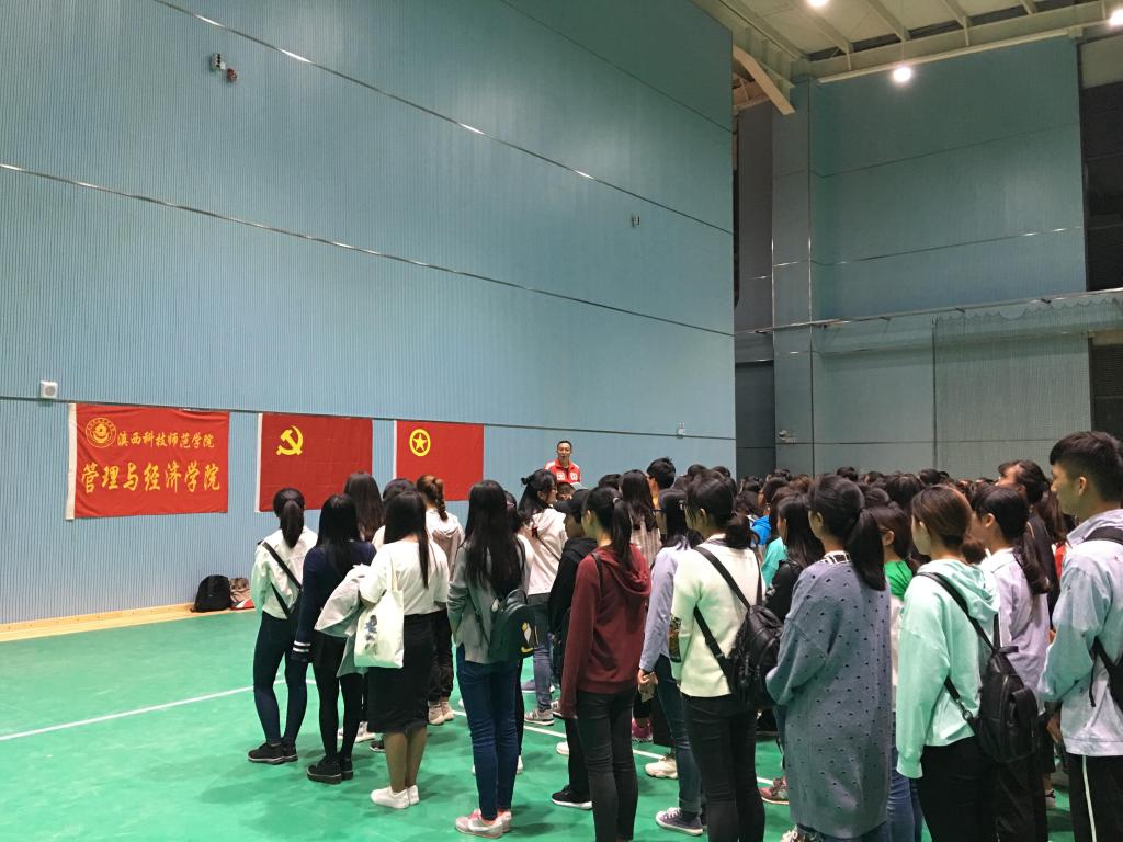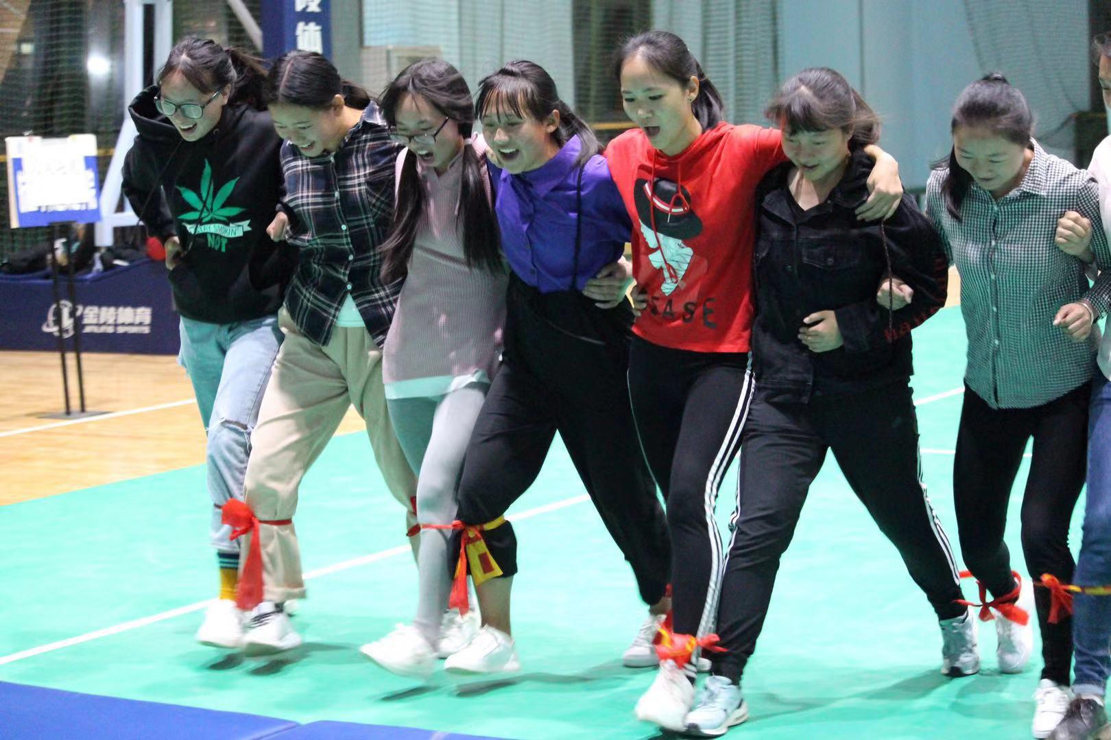 10月26日晚,管经学院在学校新建成的综合训练馆二楼开展“趣味运动会”创意主题党(团)日活动,释放红色正能量。