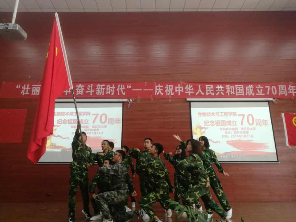 为纪念新中国成立70周年,生物技术与工程学院于5月15日在同声传译室隆重举行“壮丽七十年,奋斗新时代”——庆祝中华人民共和国成立70周年红歌比赛主题教育活动,生工院全体师生参加了此次活动。