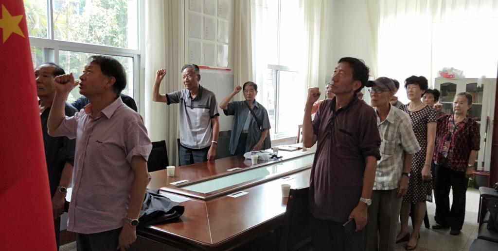 活动中,大家为6月份入党的周礼志、杨晓东、夏丽娜三位同志过“政治生日”,向他们赠送了“政治生日”贺卡。老党员们围绕“不忘初心、牢记使命”的主题展开讨论,纷纷表示作为一名退休党员,要牢记初心,牢记入党誓词,牢记一名党员的权利和义务,全心全意继续发挥余热。最后,全体党员重温入党誓词。