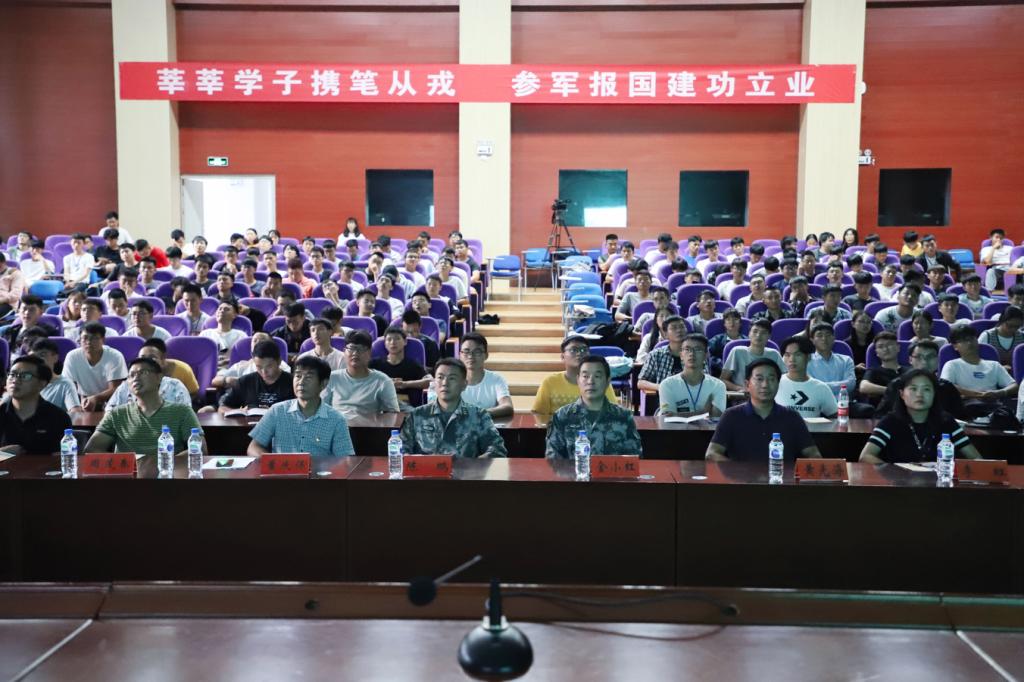 军旅生活人羡慕,气血方刚正青年。为积极响应征兵号召,文学院于7月22日在同声传译室举办“莘莘学子携笔从戎,参军报国建功立业”为主题的征兵宣传动员大会。临翔区区委常委、区征兵领导小组副组长、区人武部政委金小红,文学院党总支书记董庆保,区征兵领导小组副组长、区人武部部长陈鹏出席大会,文学院和数理学院近300名师生代表参加大会。