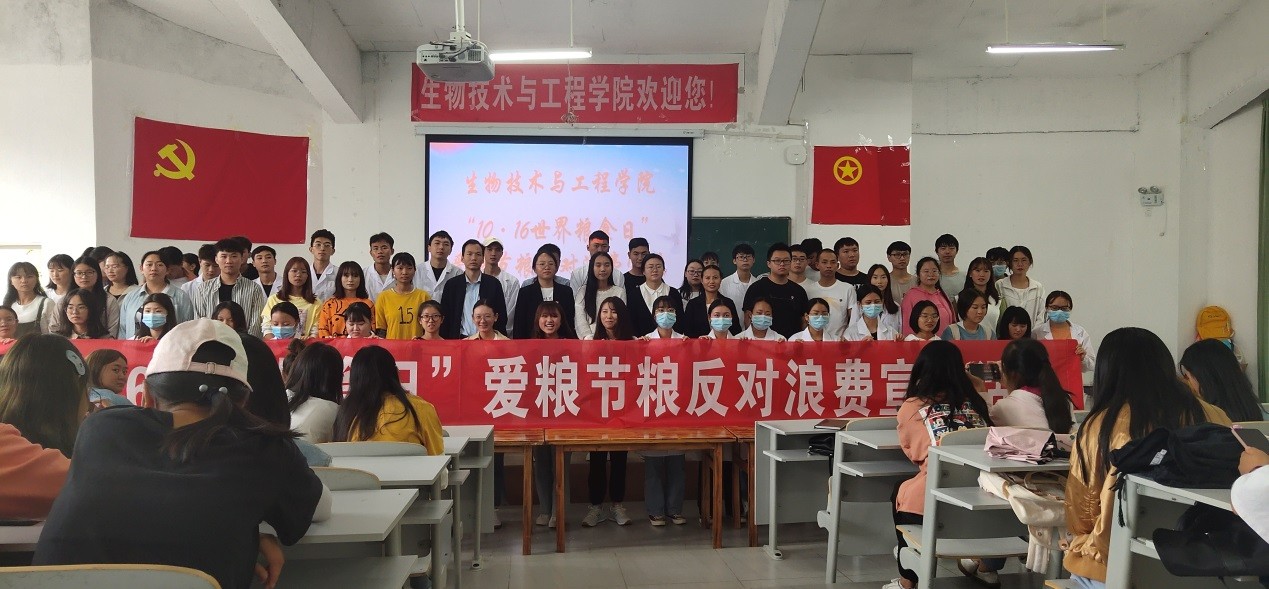 10月16日是世界粮食日,为响应习近平总书记“厉行节约、反对浪费”的号召,培养学生勤俭节约的良好美德,生物技术与工程学院举行“爱粮节粮,勤俭节约”宣传活动,300多名师生积极参与本次活动。