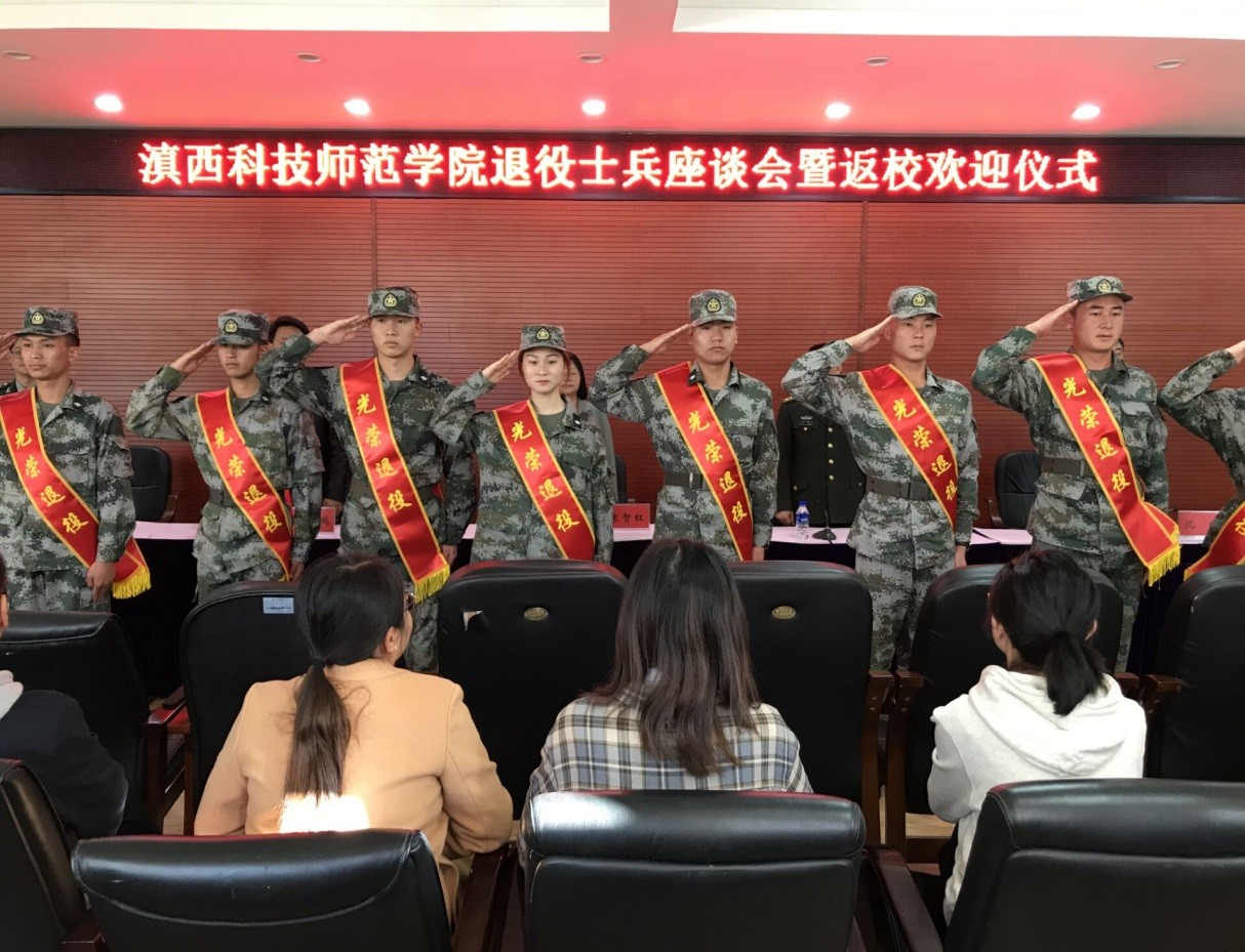 会上,学校对退役士兵以大学生的身份回归到美丽的滇西校园表达了欢迎,并希望退役返校的同学能够珍惜军人的荣誉,继续保持军人作风,展现军人品质,做好学生表率,争做一名德智体美劳全面发展的优秀大学生。同时,继续心系国防,积极支持学校国防教育,激发和带动身边宝威官方网站的同学参军入伍。