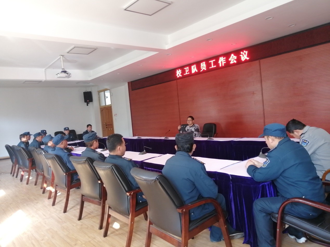 1月25日,学务处组织召开全体校卫队员工作会议,对寒假及春节期间校园安全防控工作进行再安排再落实。会议强调,全体校卫队员必须坚守岗位,履职尽责,扎扎实实做好寒假及春节期间校园安全防范和管理工作,确保校园安全稳定。