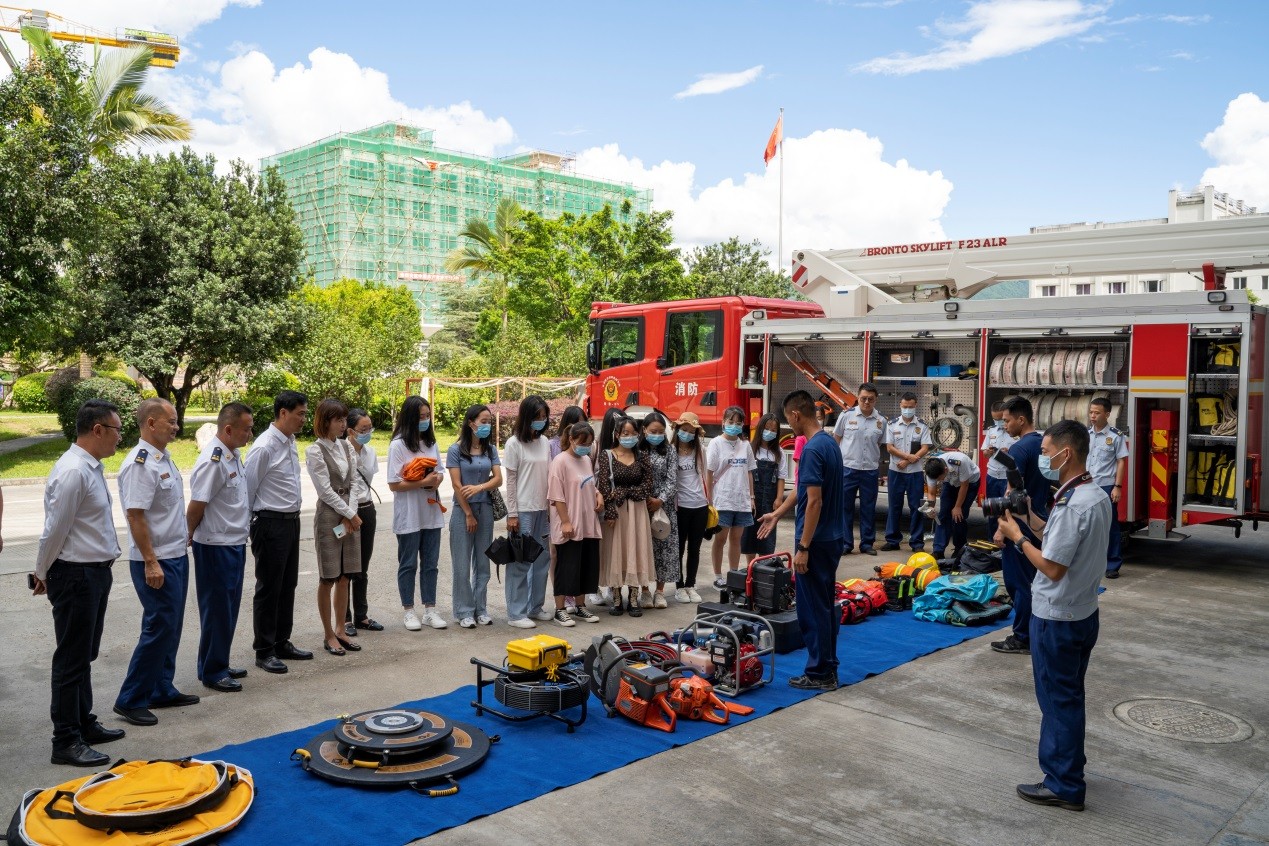 仪式结束后,亚洲微电影学院师生们实地了解体验了消防救援装备,学习了灭火器的使用方法,参观了消防救援支队队史馆、作战指挥中心和宣教中心。