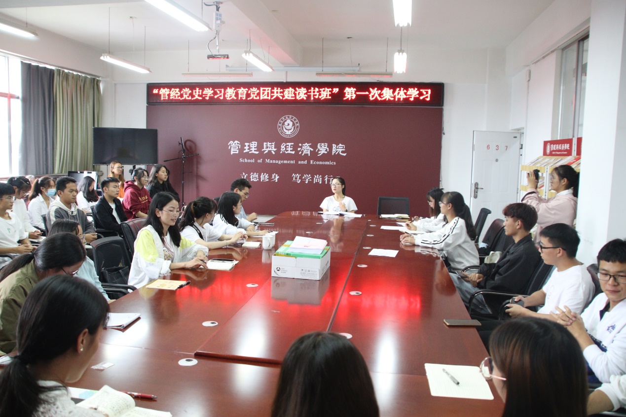近日,管理与经济学院团总支联合学生第四党支部组建“管理与经济学院党史学习教育党团共建读书班”,并开展第一次集体学习。