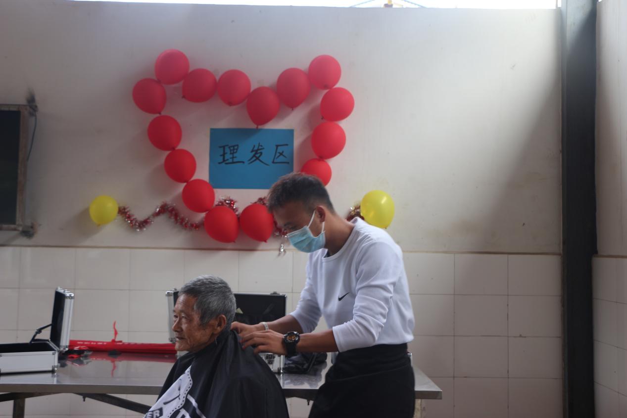 在社区活动广场,开展健康知识普及和疫情防控政策宣讲,为社区年迈、高龄、腿脚不便的老人理发和内容丰富的文艺表演。