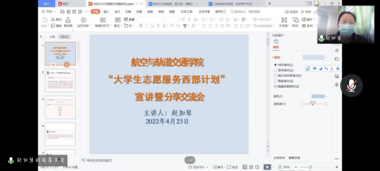4月23日,航空与轨道交通学院以腾讯会议的形式开展“大学生志愿者服务西部计划”宣讲暨分享交流会。180余名学生参加活动。