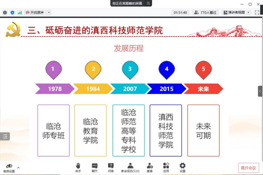 6月28日晚,智能与信息工程学院组织召开线上宣讲会,专题宣讲党的十九届六中全会精神。学院党总支书记史峰以《从百年党史中汲取奋进的智慧和力量》为题进行宣讲,学院700多名师生在线参与。