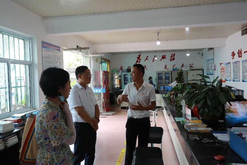 圈掌社区党总支书记李坤向教师党员介绍社区情况