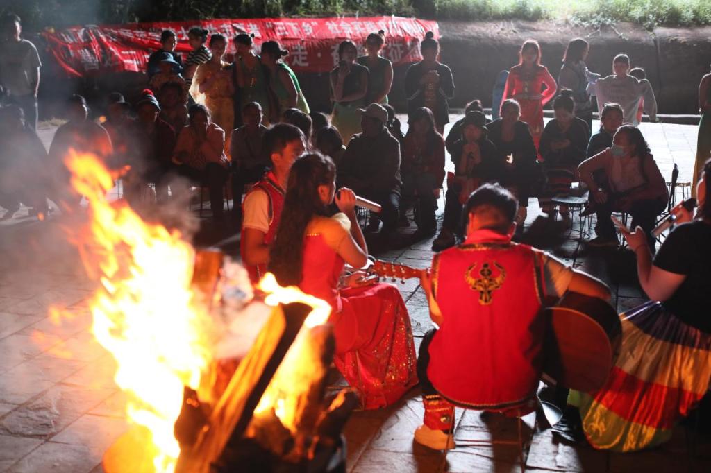 7月22日,宝威BVSports(中国)艺术学院“三下乡”社会实践团与临沧市腾龙自然村的村民们共度火把节。