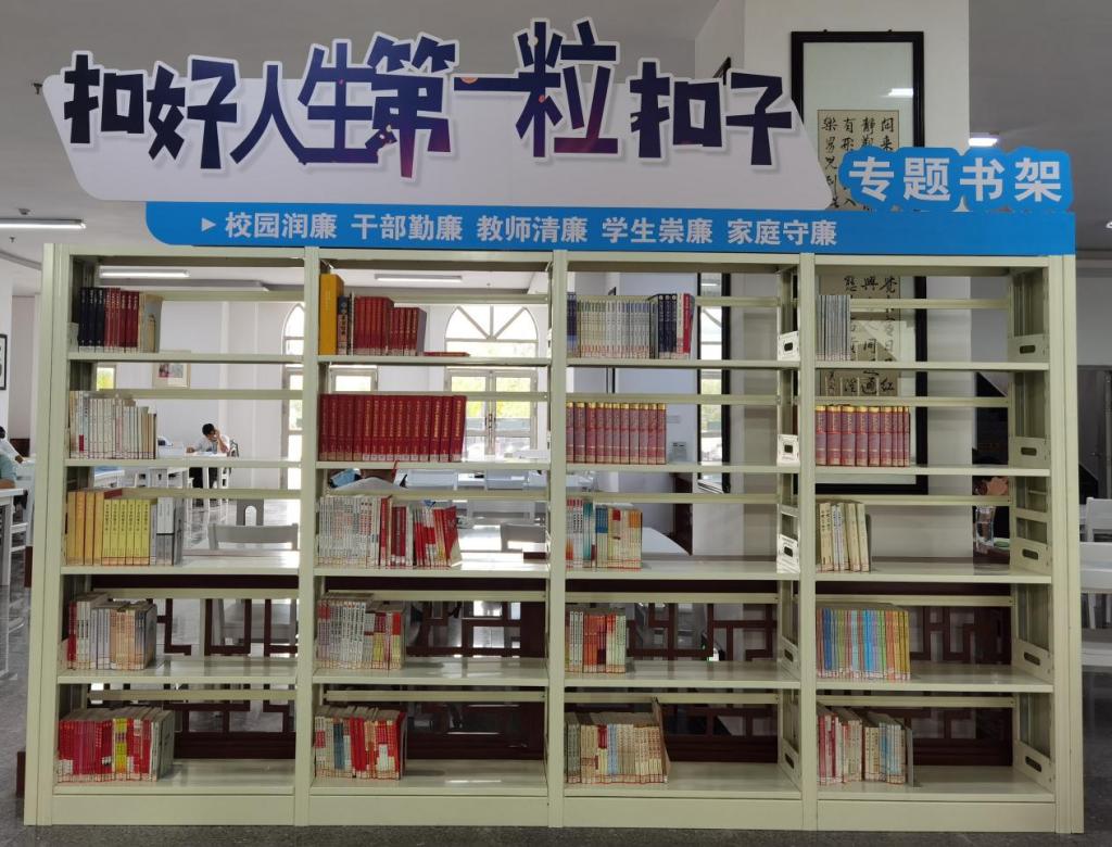 为推动“清廉学校”建设,提高一体推进不敢腐、不能腐、不想腐的能力和水平。近日,校纪委进一步拓展廉洁文化教育阵地,在图书馆建立了“扣好第一粒扣子”廉政教育主题书架。书籍内容涉及党纪法规、反腐倡廉理论、警示教育读本、违纪违法典型案例剖析、家风家训、廉洁文化丛书和廉政故事等,种类多,知识性、可读性、趣味性强。廉政教育主题书架为全校党员干部和广大师生提供了一个学习廉洁知识、接受廉洁教育、强化监督意识的良好平台,丰富了“清廉学校”建设的内涵,营造了“清明政风、清净校风、清正教风、清新学风、清朗家风”的向廉氛围,让师生在潜移默化中种下“廉洁”的种子,在书香廉韵中扣好廉洁从政、从教、从学的“第一粒扣子”。