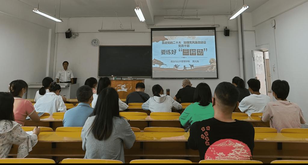 近日,政法与公共管理学院党总支组织全体师生党员开展“喜迎党的二十大·加强党风廉政建设”专题廉政党课学习。