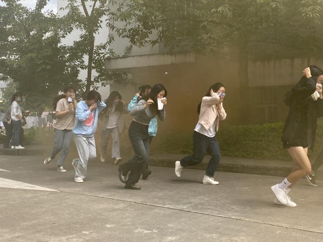 演练过程中,各组人员本着“统一思想,提高认识,严肃认真,遵守纪律,严密组织,确保安全”的要求,各司其职,各尽其责,齐心协力。随着警报响起,同学们沉着冷静,严肃有序,在现场指挥人员的统一指挥下,所有同学一手护头、一手掩鼻,在确保安全的同时,按照预定路线迅速有序撤离到安全区域。