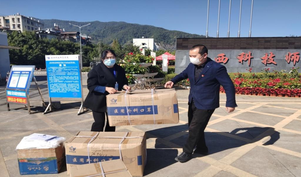 11月9日,云南宽顺商贸有限公司为我校学生开展爱心捐赠口罩活动,为我校捐赠13000只医用外科口罩,积极助力我校全体师生共同抗疫。