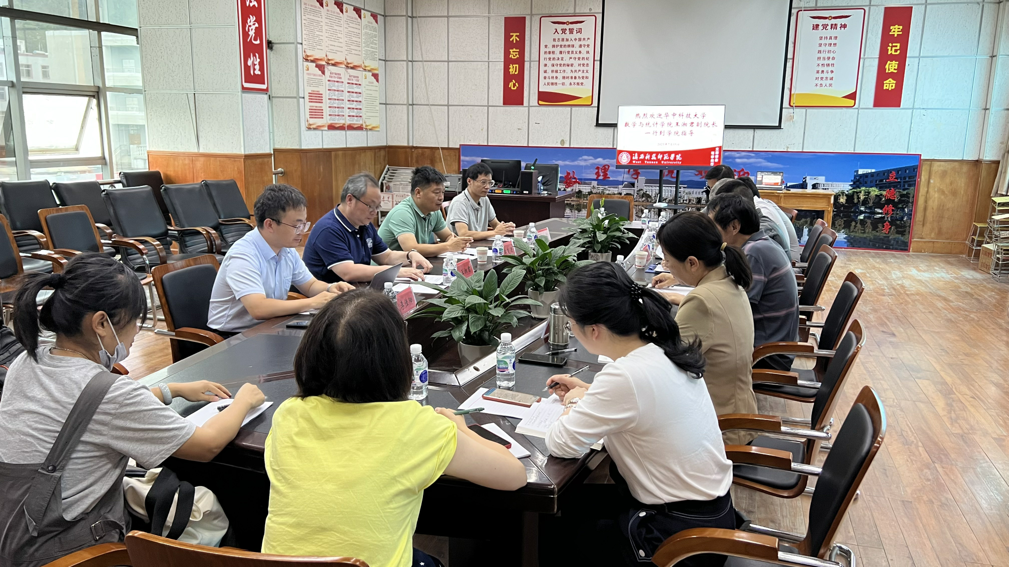 7月15日,华中科技大学数学与统计学院副院长王湘君一行到数理学院调研指导。