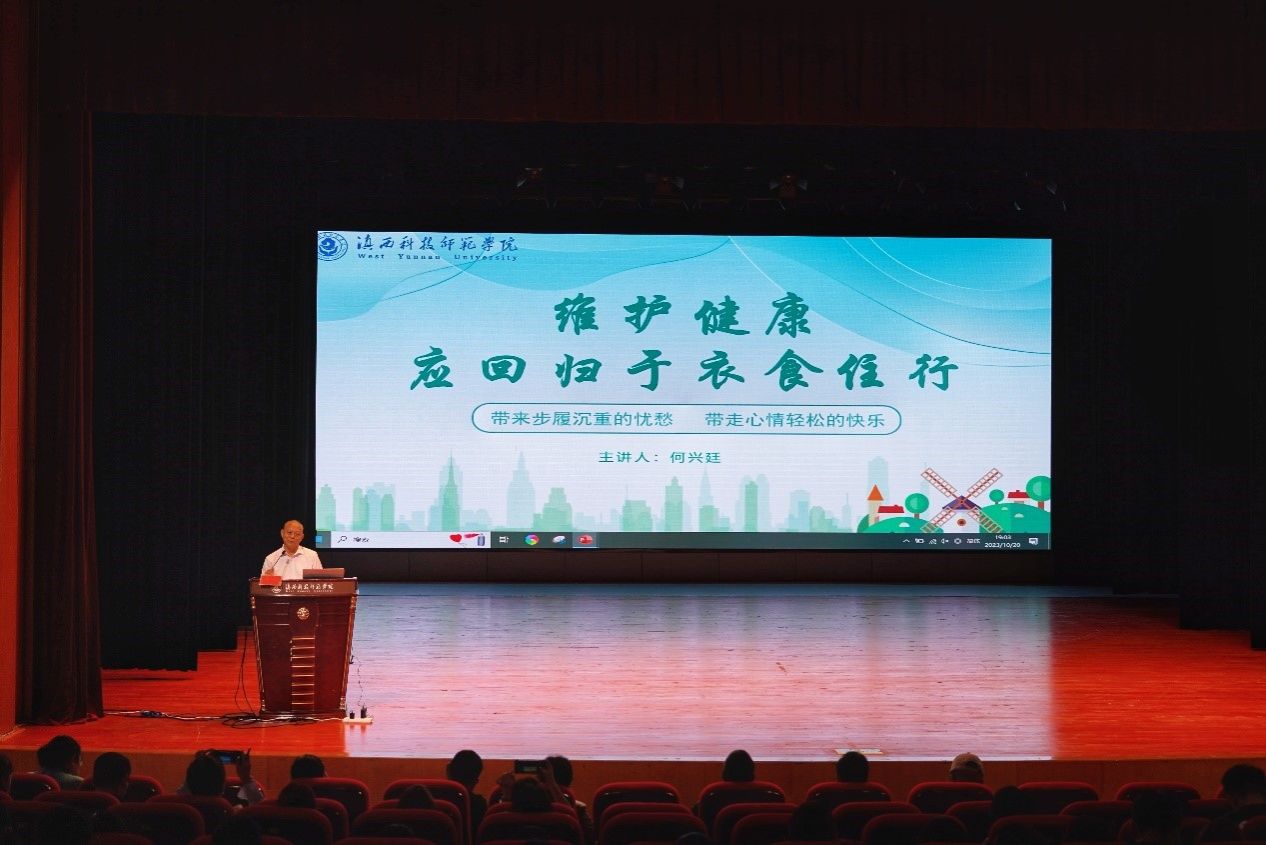 10月20日,学校组织举办“维护健康应回归于衣食住行”的主题讲座。邀请临沧市第三人民医院何兴廷主任医师主讲。