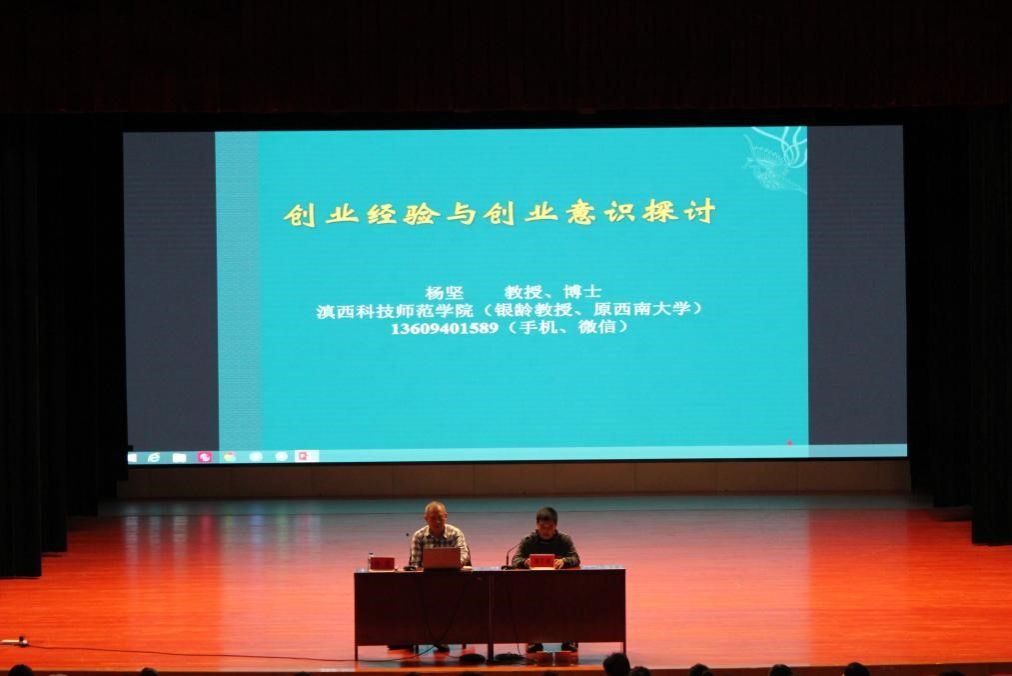 杨坚以“创业经验与创业意识探讨”为主题,结合多年的教育教学科研和管理经历,从选择创业项目的要素导入,以创业者的身份指导同学们如何“从零到有”地准备创业企划方案,并结合自己的经历和体会风趣幽默地解答同学们对于自己职业生涯的困惑。