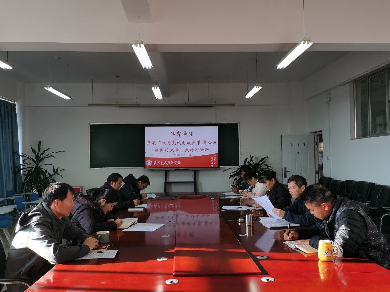 12月21日,体育学院紧紧围绕“应用型国门大学是什么,怎么办好应用型国门大学”开展“我为党代会献良策 齐心办好国门大学”大讨论活动。