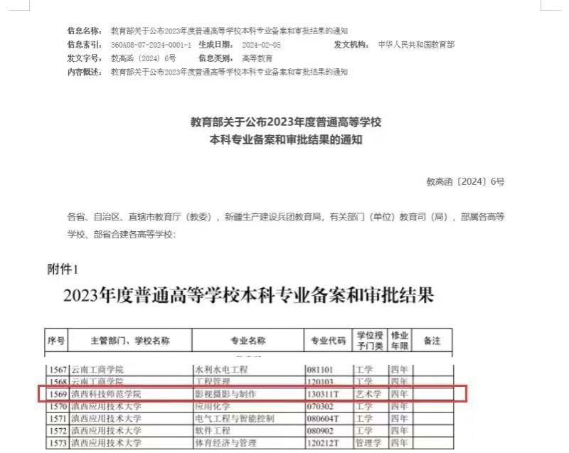教育部日前公布了2023年度普通高等学校本科专业备案和审批结果,根据公布结果,学校“影视摄影与制作”专业成功获批。