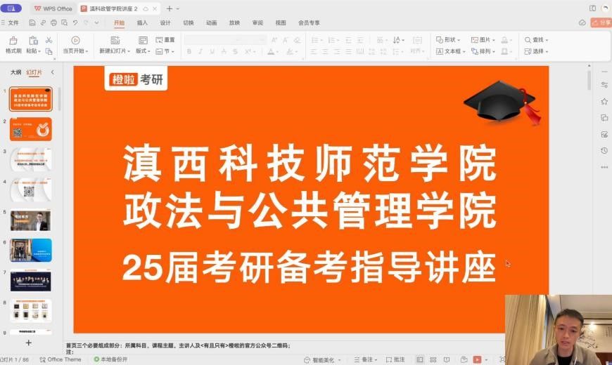 近日,政法与公共管理学院邀请橙啦教育通过在线直播课的方式为2025届毕业生开展考研指导讲座,帮助2025届毕业生全面了解研究生考试备考策略。