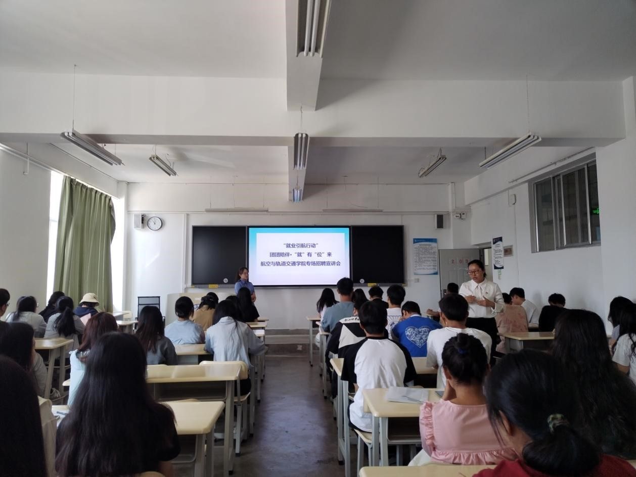 4月26日,航空与轨道交通学院开展以“团团陪伴,‘就’”有‘位’来”为主题的专场招聘宣讲会。