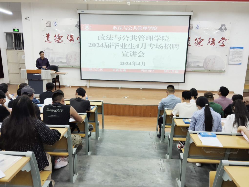 近日,政法与公共管理学院邀请临沧华图教育和尚岸教育到校开展岗位招聘和就业指导,政法与公共管理学院党总支书记、毕业生班主任、就业工作辅导员和2024届毕业生共同参加招聘宣讲会。