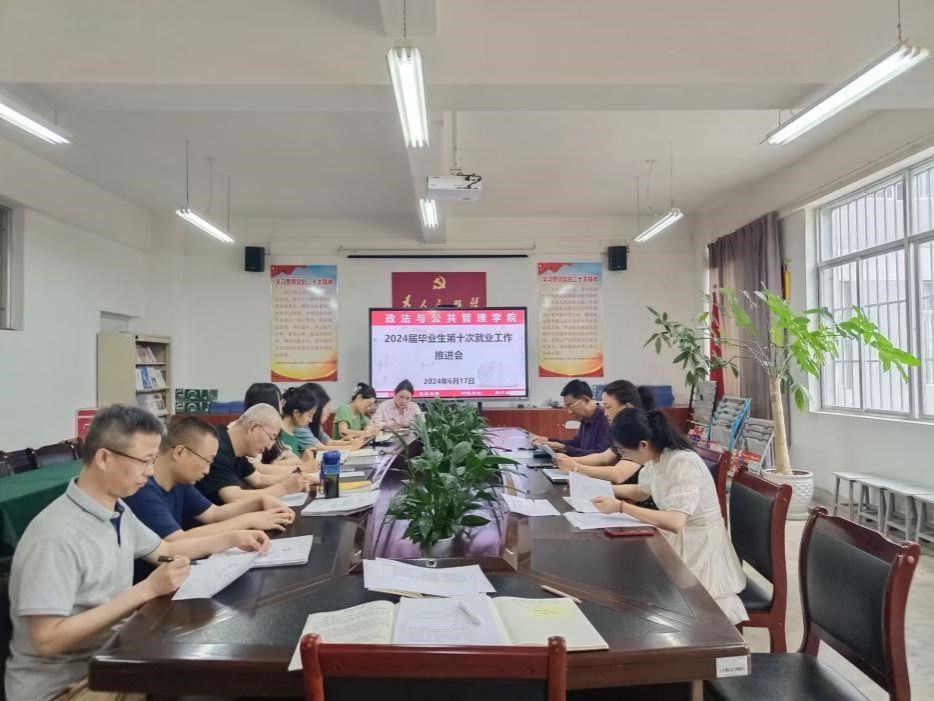 6月17日,政法与公共管理学院召开第十次就业工作推进会,学院全体教师参会。