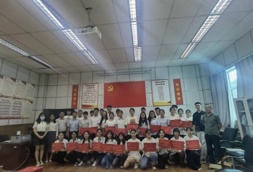 会上,教师党员为毕业生党员赠送“红色随身包”,毕业生党员代表宣读入党申请书,重温入党初心,全体党员面向党旗宣誓,重温入党誓词,毕业生党员代表发言。