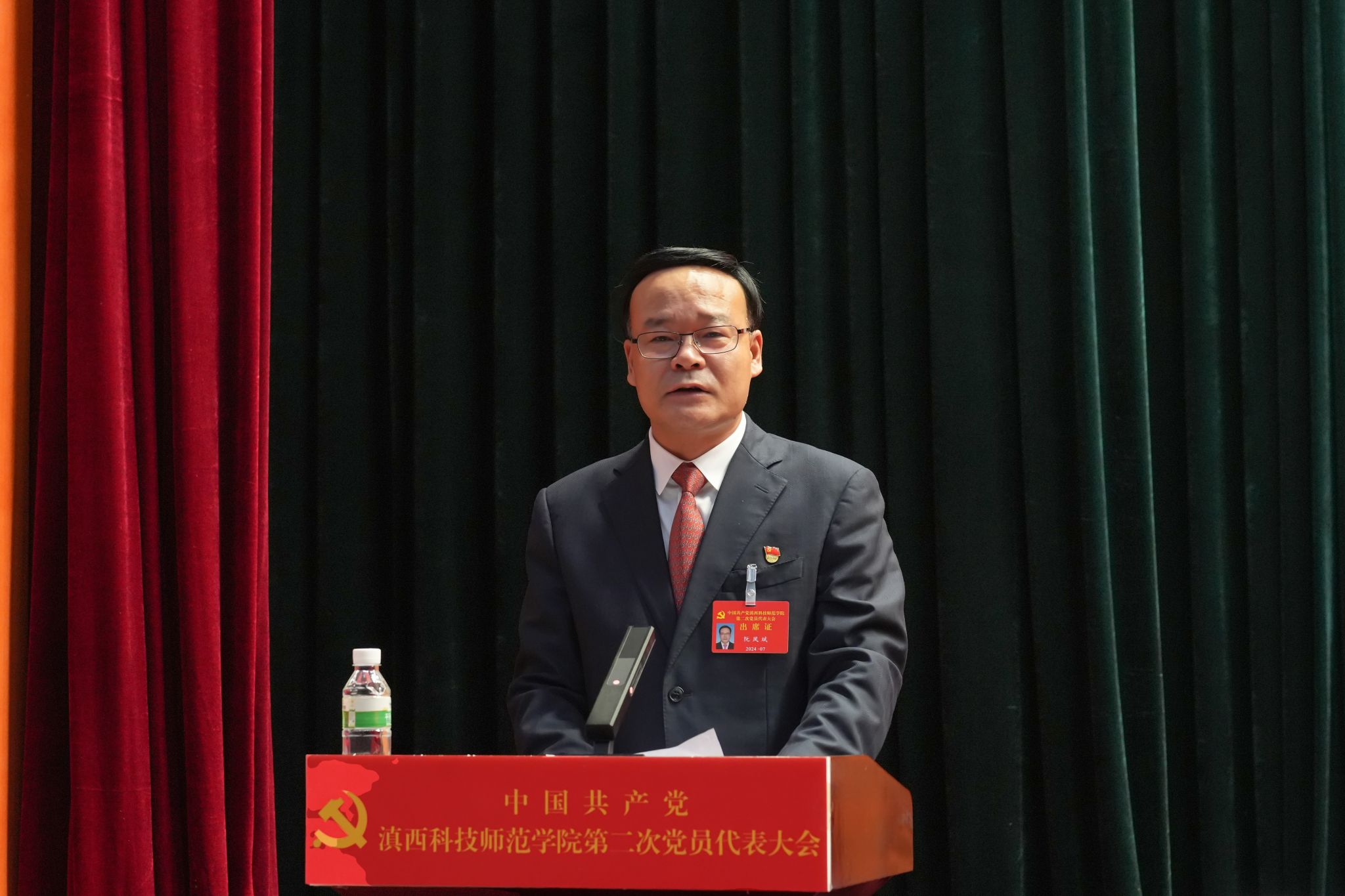 刘刚代表云南省委教育工委、省教育厅对大会的召开表示热烈的祝贺,对学校第一次党代会以来所取得的成绩给予了充分肯定。他指出,在全党深入学习宣传贯彻党的二十大精神,喜迎党的二十届三中全会召开和新中国成立75周年之际,召开的本次党员代表大会是学校政治生活中的一件大事和喜事。他要求,全体党员代表谨记肩负广大党员和师生群众的信任和重托,以饱满的政治热情和高度的政治自觉履职尽责,认真履行党章赋予的权利和义务,要牢记使命,要议好报告,要选好班子,要树好形象,确保圆满实现党代会既定的各项目标任务。