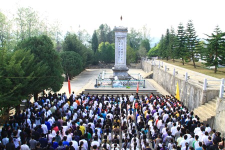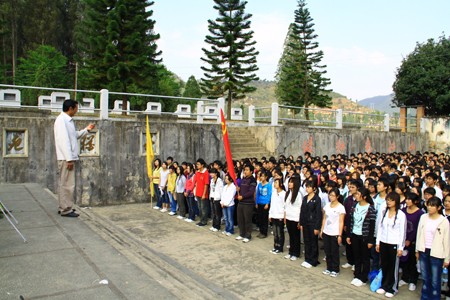 2010年4月5日清晨,临沧师专党委宣传部部长、党校副校长周孔张带领604名入党积极分子来到烈士陵园缅怀先烈,在纪念碑前诵读入党誓词。