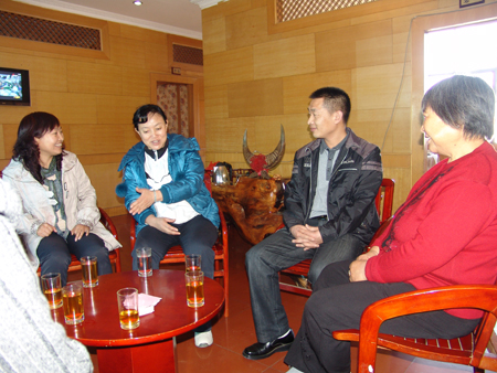 餐前,那校长与于博士一家促膝谈心。那校长关切地询问于博士一家人对临沧生活的适应情况,询问于博士的工作适应情况。一家人均表示很喜欢“春城中的春城”——临沧的宜人气候环境。在那校长营造的融洽、温暖的氛围中,于博士兴致勃勃地同校长谈起自己的工作,谈自己正在做的事情,想要做的事情,于博士说:从来到学校的那天起,学校各级领导和老师的关心,让我感受着临沧师专这个大家庭的温暖,师专人朝气蓬勃、踏实肯干、团结齐心的精神风貌深深感染着我,吸引着我。来临沧师专工作的近半年时间,我很关注临沧的资源状况,我发现临沧的物种资源,包括珍稀物种资源非常丰富,我感觉,来这里搞农业科研真是找对了地方,我想要在这里和大家奋斗一辈子。那校长认真地倾听,听罢,她对于博士说:看到你的工作热情,我深感欣慰。我要把我的焦虑告诉你,相信你跟我有同样的焦虑。临沧师专需要做的事情很多,如果临沧师专没有所为,就无法向教育界交代,无法向临沧人民交代。对于你,作为临沧师专引进的第一名博士,学校对你的期望很重,希望你大胆去实践自己的想法。那校长还为于博士提出了一些工作思路:结合临沧经济发展,尤其是农业发展的需求,确定研究方向、搞好专业建设,立刻出方案,立刻开始分步实施。如漂浮育苗、茶叶选种、农民工培训这三块工作可立即开始实施。于博士对校长的鼓励和为其打开思路表示感谢。