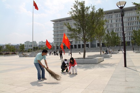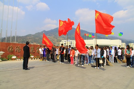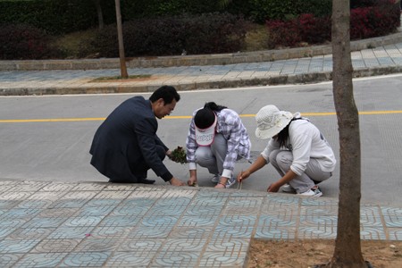 中午12时30分,临沧师专团委组织近百名由团干部和团员组成的队伍,兵分两路,从临沧师专大门口出发沿世纪路,途经市政府、沧江园,到临沧市客运站为终点,进行道路义务清洁活动,历时近两小时。学生手中的武器是食堂废弃的筷子、竹编垃圾箩筐和扫帚,大面积的落叶等垃圾用扫帚清理,落在地砖缝里的烟蒂、碎屑等请筷子上阵。在这个大旱的春季,中午的阳光已经有了些炙烤的攻势,长时间浸泡其中,同学们的额头,脖颈都多多少少地渗出了细细密密的汗珠,曾白皙或健康黑的脸颊都添了片片红晕。这里、那里,一根根烟蒂、一片片碎屑被同学们毫不客气地逮到垃圾箩里。风起,偶会遇见轻质塑料袋等垃圾随风想去旅行,同学们紧追几步,不留情、不商量,即使垃圾停歇在了路边的高树上,也一定将之“捉拿归案”、“绳之以法”。行进在世纪路两边的这支队伍,游移得较慢,弓腰、扫视走过的每一个平面、弯腰或蹲下、捡起、扔进箩,大家几乎都在重复着这样的动作,几个箩里的垃圾越积越多了,提箩的同学手里越来越沉了,而这支队伍过后留下的是更细微的洁净。同学们的汗水可以骄傲地告诉你:我所走过的地方,你想找一片瓜子壳都难。