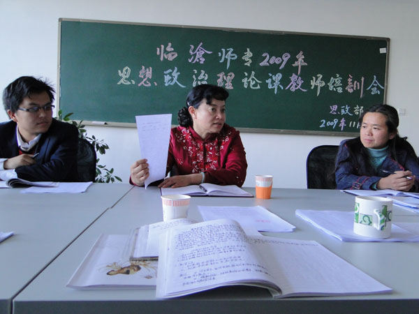 那校长对思政部提出了三点要求:第一、在这个快鱼吃慢鱼的时代,要加快节奏,提高工作效率;第二、要开始着手申报特色专业、重点专业和精品课程的筹备工作;第三、要发挥专业优势,对校园文化的系统建设作思考、出策划。