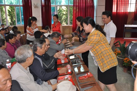 联欢会结束后,学校为老同志们安排了节日晚餐。晚餐后,学校领导还对因身体不适无法参加联欢会和节日晚餐的老同志们进行了慰问。