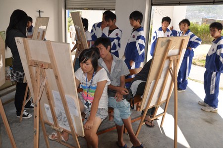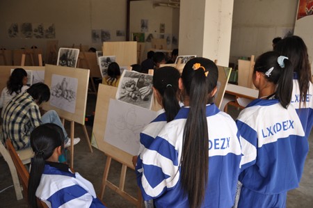 (党委宣传部文/张玉超 图/陈奇云)2009年10月30日下午,28名临翔区二中的同学在副校长柴学陟、音体美组长朱虹、美术老师王朝洲的带领下,参观了我校艺体系的画室。