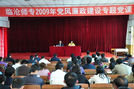 (校党委宣传部文/张玉超 图/陈奇云)2009年11月4日下午,临沧师专党委书记谢昌浩在电教楼阶梯教室,为学校的党员们上了一堂党风廉政建设专题党课。