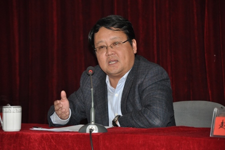 临沧师专党委书记谢昌浩正在做讲座
