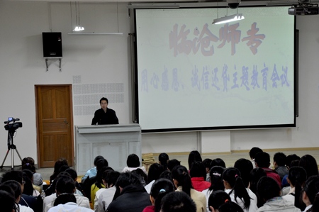 会上,学生处处长刘庚碧对贫困生助学贷款工作作了指导讲话,中国农业银行临沧分行个人信贷客服部经理申琨对同学们作个人信贷诚信知识讲解。会议还组织同学们观看了“贷款助学,信用助人”的光碟。