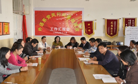 考核以召开会议的方式进行,24名外语系的干部职工参加了会议。会议首先听取外语系党总支书记周虹汇报外语系2009年度党风廉政建设工作自查报告。报告中,周虹书记从六方面概括了外语系落实党风廉政建设责任制情况:第一,思想上高度重视,在与学校签订《责任书》后,党总支及时召开有关会议,认真对《责任书》上所规定的各项工作进行研究,列入总支工作内容,并根据外语系的工作实际,将《责任书》进行梳理,确定了外语系需要进一步改进和加强的工作环节。第二,成立了由系主要领导、各教研室主任及总支委员组成的党风廉政建设工作领导小组,在学校党委的统一领导下负责党风廉政建设的日常工作。第三,健全学习制度,一年来组织全体党员和干部重点学习了中央、省委以及学校党委印发的各类防腐拒变的重要文件,注重加强对经济往来、学术研究、教学、科研等工作的管理和监督。第四,认真组织开展了政风行风评议工作,并认真组织开展了党风廉政教育活动。在全系范围内开展师德作风建设批评与自我批评,要求教师撰写改进工作作风方面的心得体会上交系党总支;修订完善了“外语系班主任工作条例(试行)”、“外语系学生会干部管理办法(试行)”、“外语系系务公开工作条例”等多项管理制度。第五,严格执行党风廉政建设的有关规定,照章办事、照章奖惩,对原有财务管理制度进行了修订和完善,认真执行“收支两条线”的管理制度,严格按照学校规定对教学、科研、办公经费的管理和开支。第六,坚持民主管理,积极推行系务公开。对系内财务、评先选优、职称晋升、推荐各种国内外进修、访问等问题,均坚持公正、公平、公开的原则,在全系师生的监督下进行。