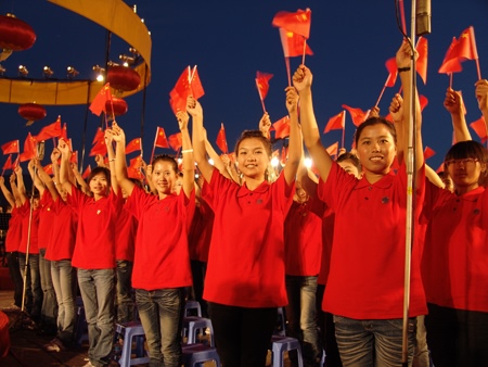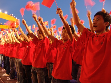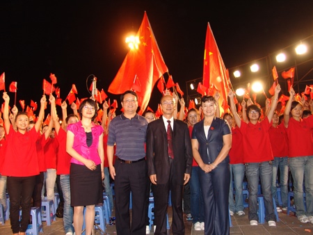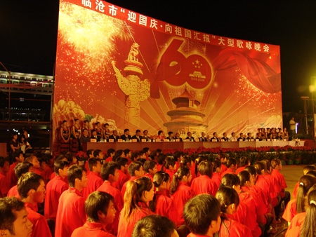 (党委宣传部 陈奇云 摄影报道)在举国上下庆祝中华人民共和国成立60周年的大喜日子里,临沧师范高等专科学校抽调各系各年级的200名师生组成演出方阵,和全市人民一道,于9月28日晚,云集西河园,欢聚一堂,参加“迎国庆·向祖国汇报”临沧市国庆大型歌咏晚会。