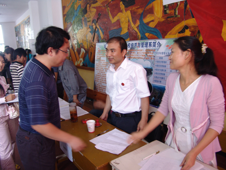 (党委宣传部文/张玉超图/陈奇云)2009年8月29日中午11时,党委书记谢昌浩深入迎新工作的“主战场”——行政楼一楼大厅和二楼大厅,检查督促迎接新生工作。