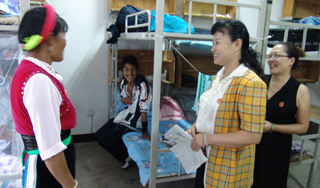 走进宿舍,那校长首先向家长和新生们问好,恳切地请求家长和新生对学校暂时的宿舍条件艰苦的现实给予理解,喜悦地告知新的宿舍楼即将破土动工的计划,安抚家长和新生的情绪。听完校长诚挚的歉意,和贴心的问候,一名来自大理的五年制新生的家长对校长说:孩子年龄小,即将长期远离我们独自生活和学习,我一直在担心他能否适应好这里的环境,健康成长。来到这里后,学校热情和周到的服务,让我和孩子觉得很温暖。尤其是校长您还能从百忙中抽空来看望我们,把孩子交给这样一个人文关怀浓厚的集体,我放心了。